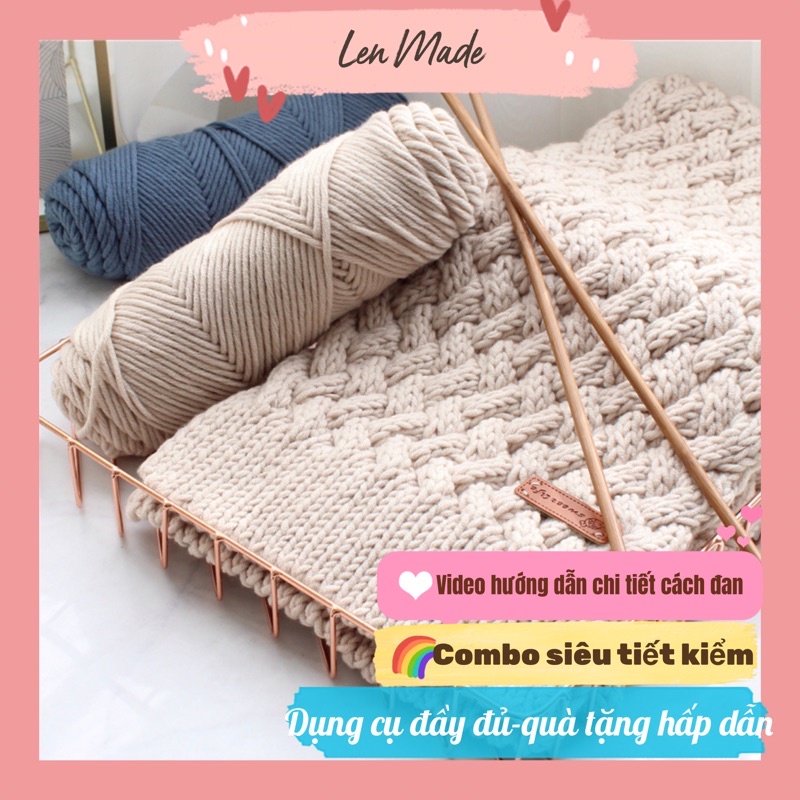 Gói nguyên liệu Đan khăn len quàng cổ sợi cotton Hàn xịn quà tặng bạn trai cặp đôi nam nữ (Có video hướng dẫn cách làm) free ship